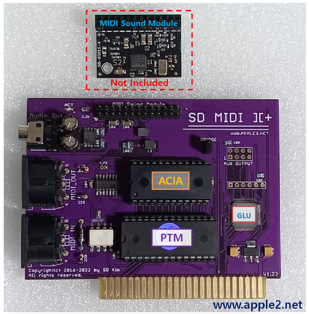 SD MIDI][+ is compatible thePassport MIDI card and has a capable to use MIDI sound module. SD MIDI ][+. And included a SD MIDI][+ Player as bundle which can play . MID files on APPLE II. Enjoy your APPLE II again with SD MIDI ][+.